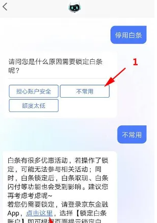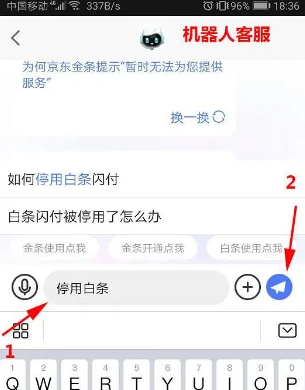 2、在机器人客服页面,输入“停用白条”并发送之。