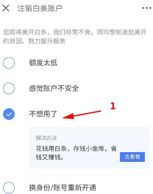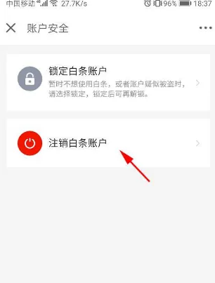 4、如果是想暂时关闭京东白条,应选择“锁定白条账户”;如果想永久关闭,则选择“注销白条账户”。