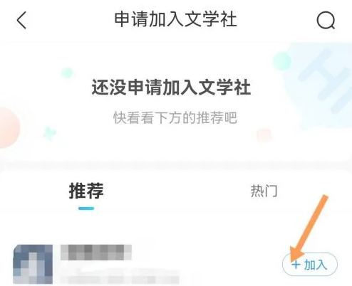 进入页面后,在文学社列表中选择自己想要加入的,点击后方【+】号,即可加入文学社
