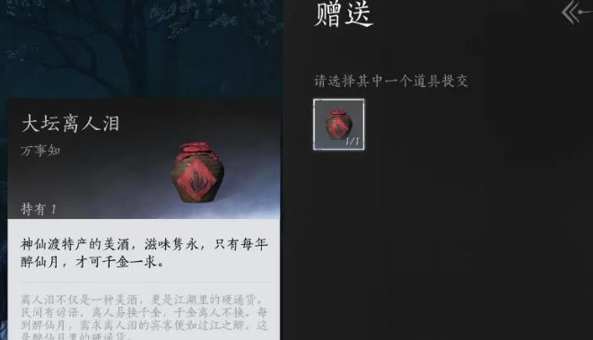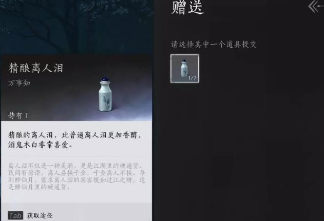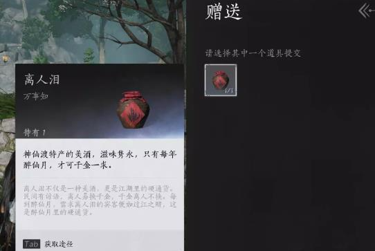 5、拿到后把酒都赠予木白后再进行对话即可完成。