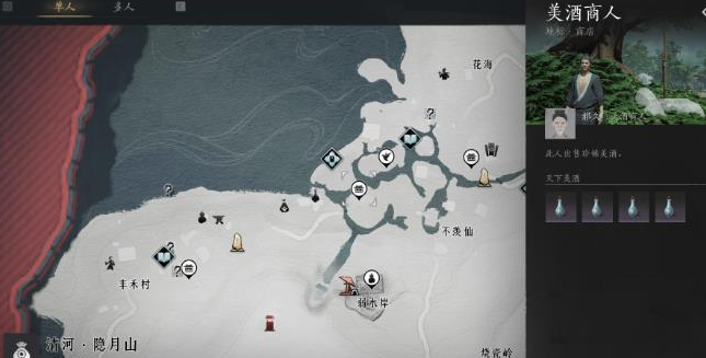 1、首先前往不羡仙地点,打开找到美酒商人的商店。