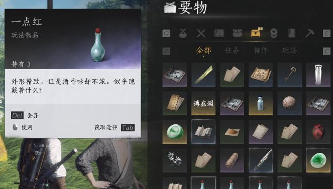3、再打开背包,选择【一点红】使用右键喝光即可获得。