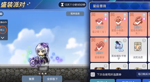 4、在盛装派对可以抽到名时装,保底概率为55次,也可以进行合成。