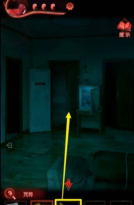 4、根据女鬼的指示,在地板中找到【符咒】。