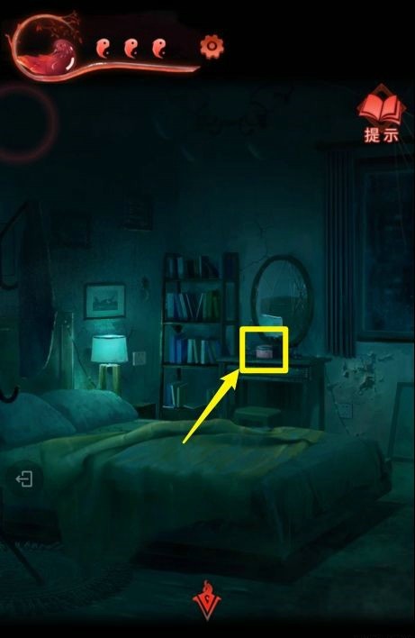1、点击卧室的书架,在发光的书中找到一些线索,并得到【一张纸】。50