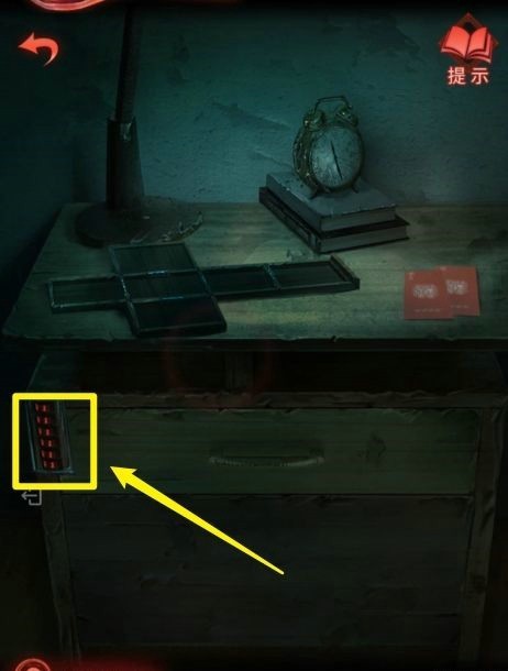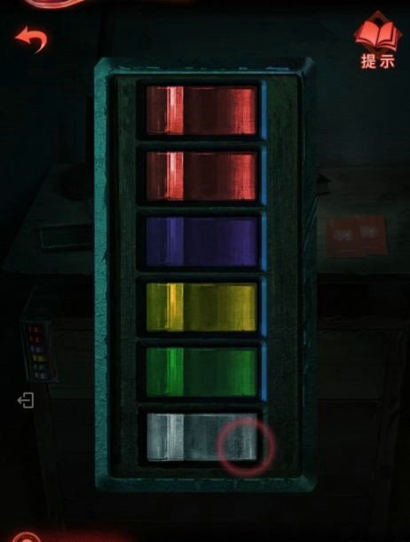 15、点击下面的抽屉,根据52得到的线索,输入密码:红、红、紫、黄、绿、白,得到【蜡烛】。