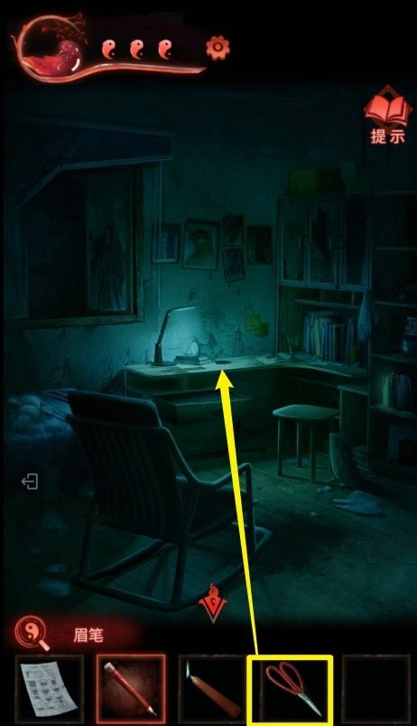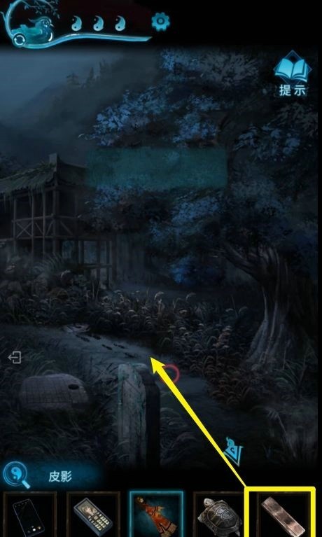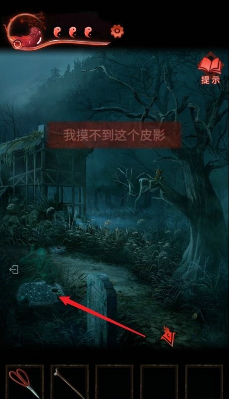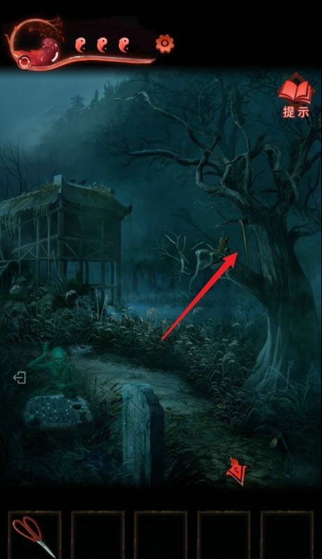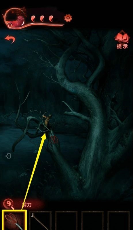 10、返回野外小道,使用【剪刀】取下树上的【皮影】。