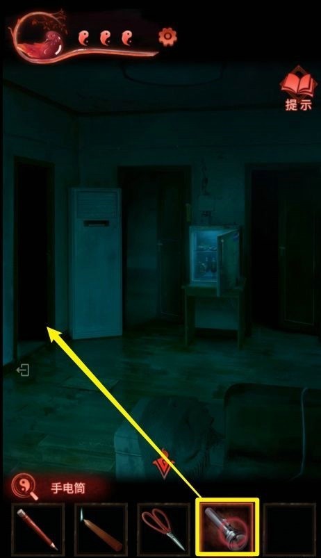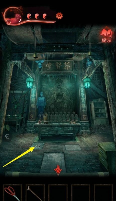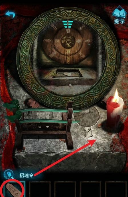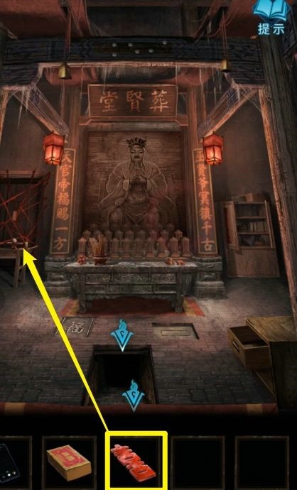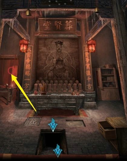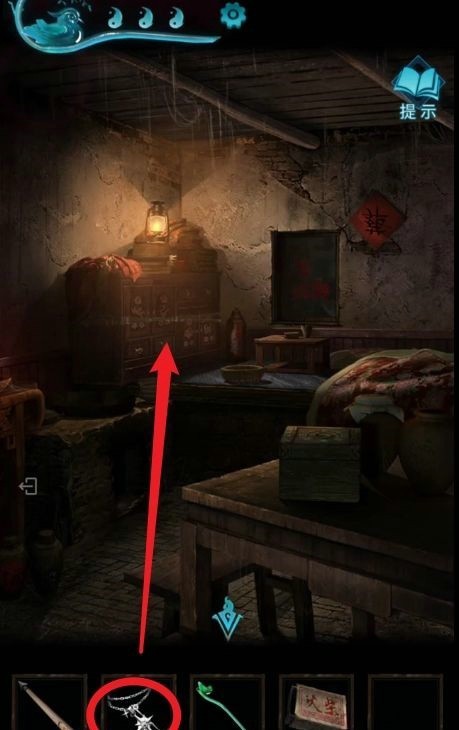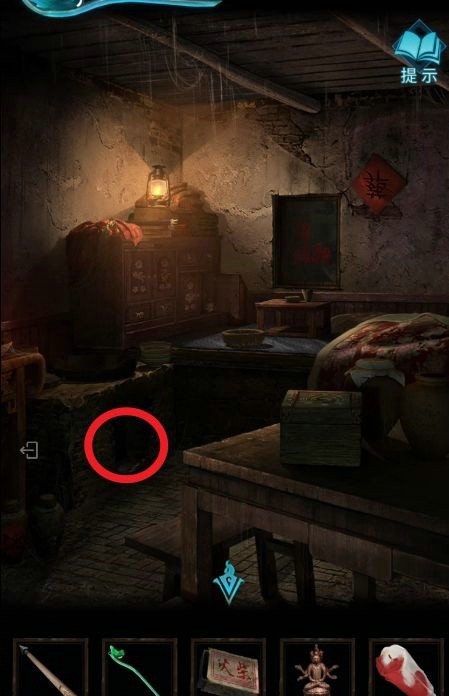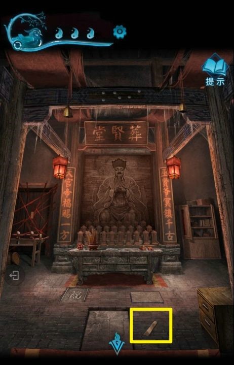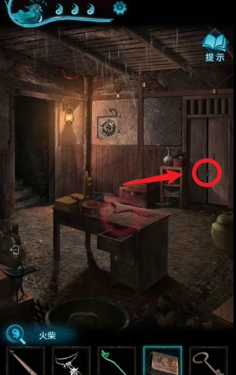 第4步:在房门处使用“香灰铲”挑开“门闩”;