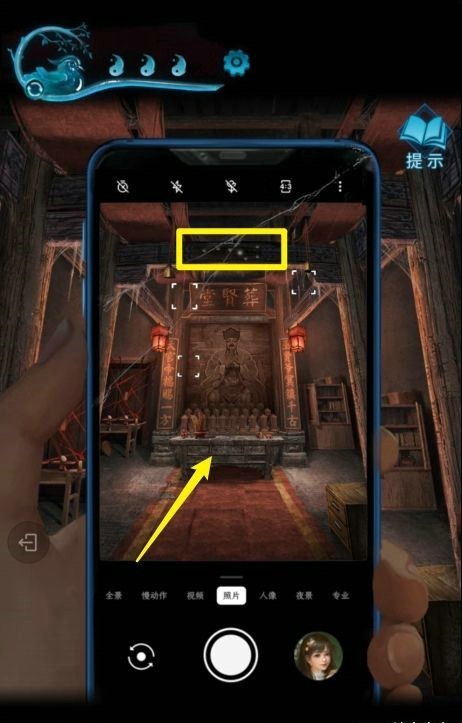5、使用手机查看宗祠雕像上方,观察北斗七星的闪烁顺序,按照此顺序依次点击下面的北斗七星。