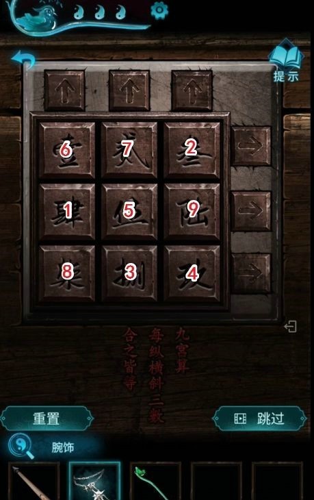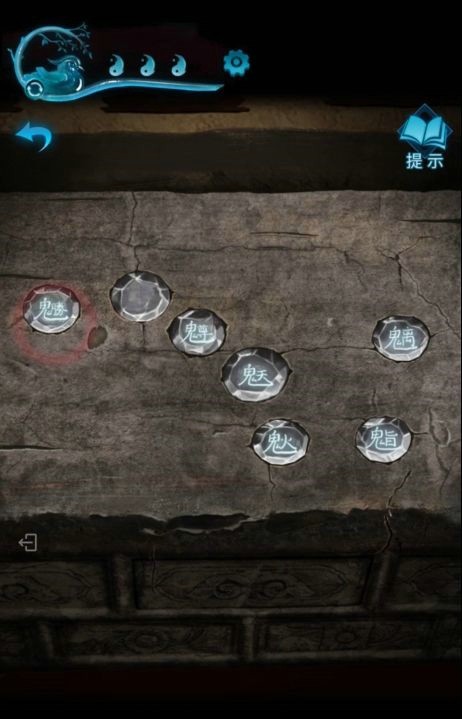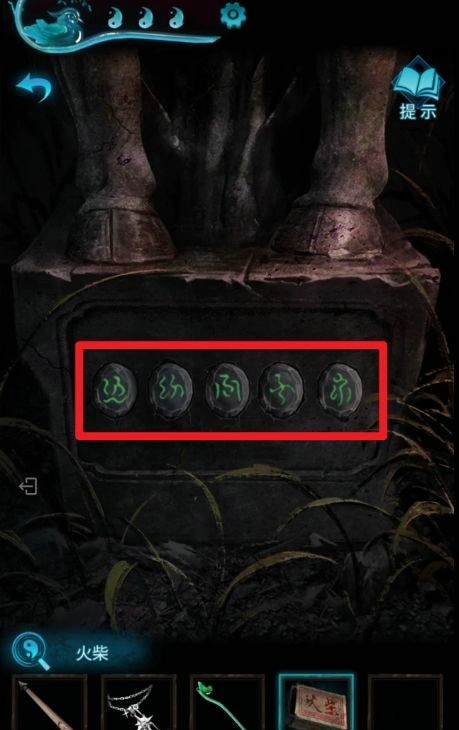 25.将石符从右向左摆放在机关中,夏至放在下方缺口处,打开机关得到【招魂令】,随后下山返回祭坛,将【招魂令】放置在祭坛,游戏结束。
