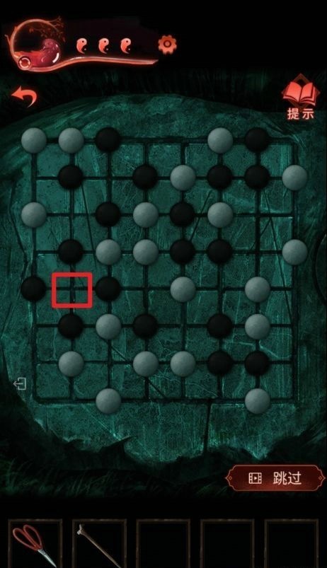 18.壁画抽走后拿走【阴阳玉】,回到外屋将阴阳玉放置在墙壁左上角黑白机关处,点击小球使颜色与下方区域颜色不同,难度适中,打开机关后观察阴阳图。