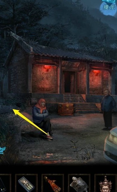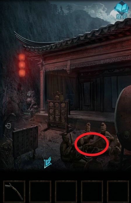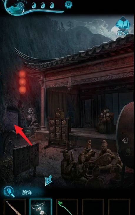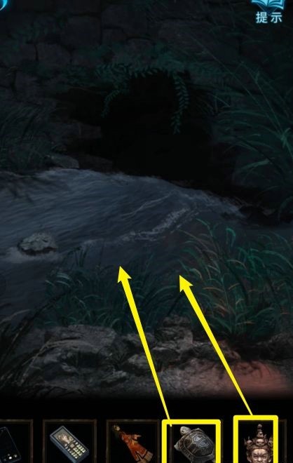 24、回到宗祠门口,点击左边的河,将【石龟】和【佛头】都扔入河中,然后返回宗祠。