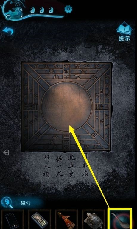 16、回到野外小道,点击发现【石龟】的石盘,将【磁勺】放上去。