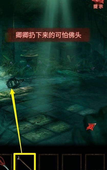 25、使用【拐杖】将【佛头】移动到机关上,压住机关。