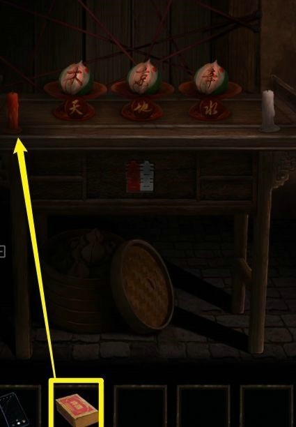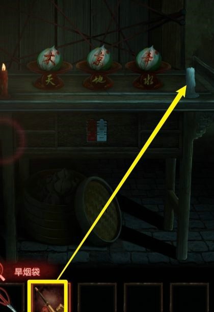 37、使用火柴点击左边红蜡烛,转换女主视角,使用【旱烟袋】点燃右边白蜡烛。