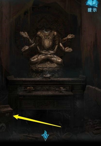 第8步:再将柜台上灯光开关的”3号开关“打开,用来照明神龛,照明后的神龛内可以在左侧摘下”咒符“;