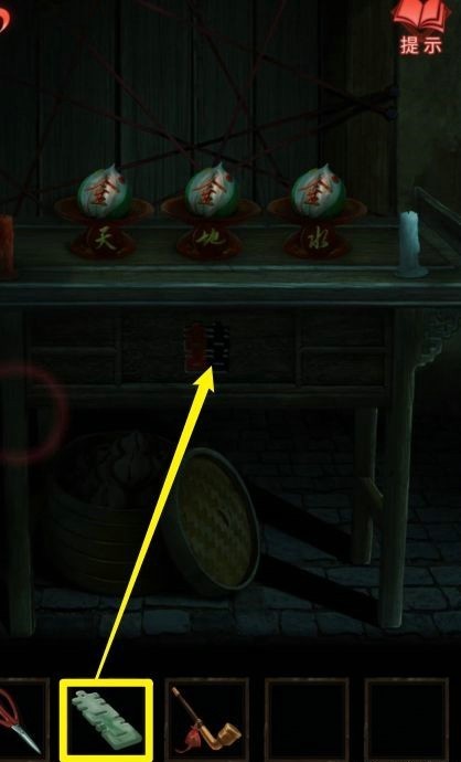 第6步:将“香灰水”倒入八仙桌上的“茶杯”中,杯身上会浮现一些线索;
