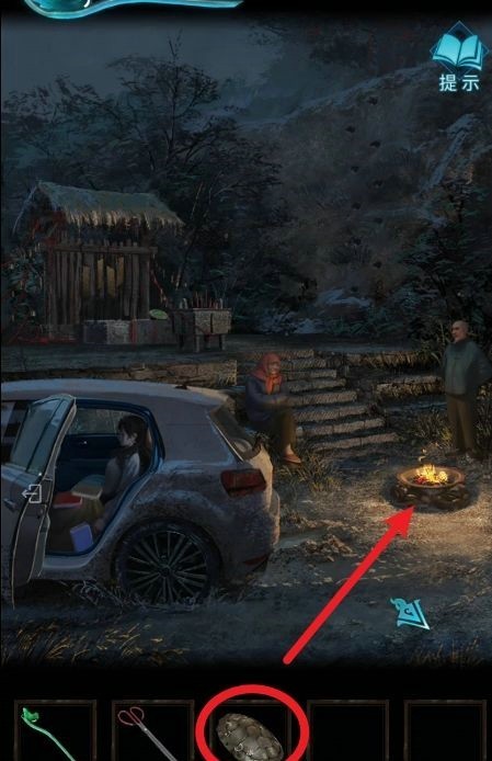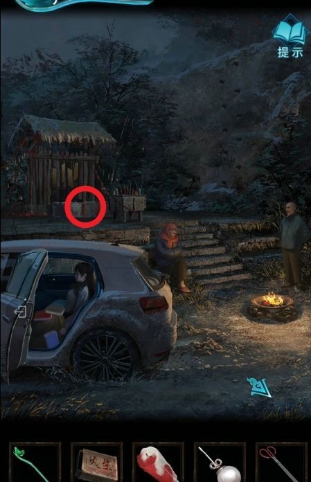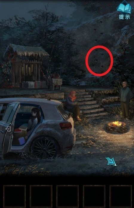 10.将门推开一条小缝隙,观察房间内香的高度返回车旁点击香炉将香点燃,香燃烧高度与屋内香高度一致时,香炉上出现文字,返回石狮子处,点击狮子脚下,从左向右点击第三个按钮2次,再点击第一个按钮1次,随后点击第五个按钮1次,然后点击第二个按钮1次,最后点第一个按钮即可拿到【钥匙】。