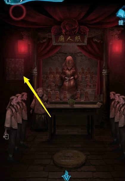 42、进入宗祠,将【铜镜】放在雕像左边的纸人庙案台上(调整铜镜使背面对着自己)。