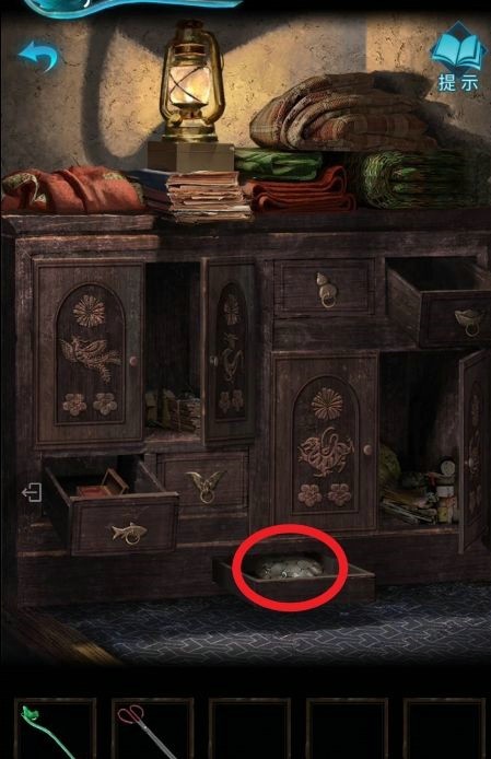 第17步:使用“红盖头”打开缺少把手的“抽屉”,找到“喜烟”;