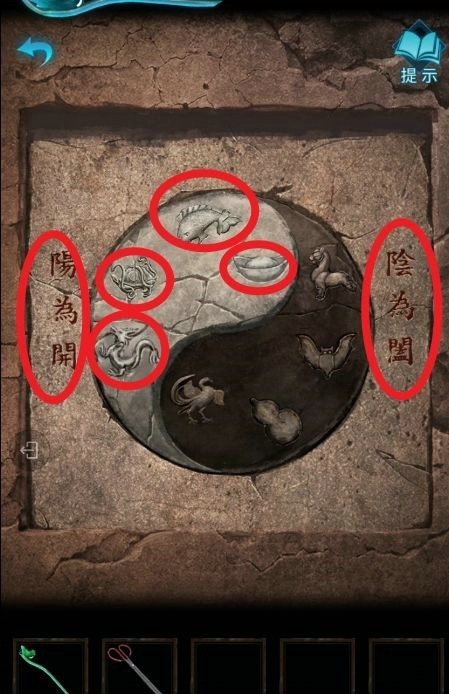 19.根据阴阳图将屋内龙、玄武、鱼和元宝的柜子依次重新打开,暗门自动开启获得【龟壳】。