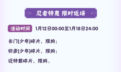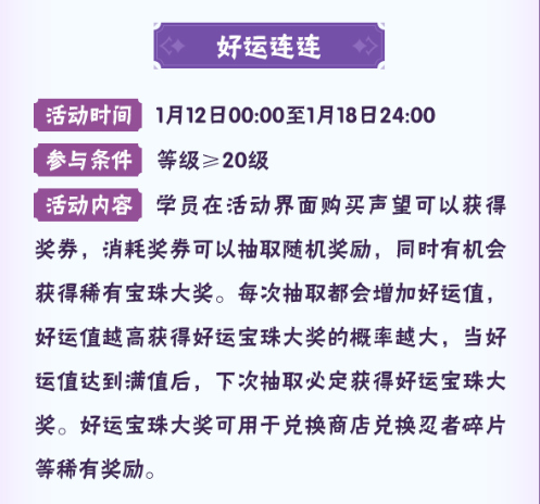登录抽奖时间:1月12日00:00至1月18日24:00