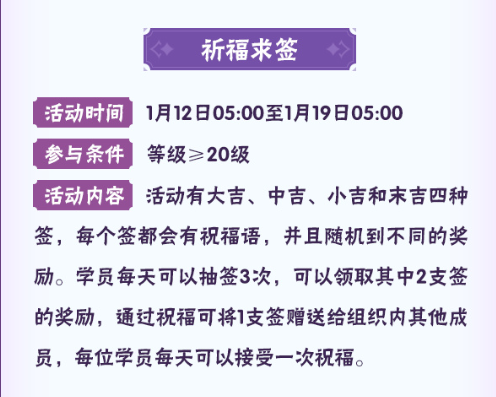 学员每天登录可获得1次抽奖机会,消耗1次抽奖机会可以转动转盘,获得一份奖励。成功邀请好友助力可以增加1次抽奖机会全区服所有学员在活动期间的好友助力次数达到指定数量,会分别解锁4份全服助力奖励。