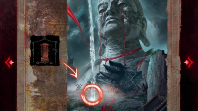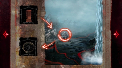 5、【女】拾取水流尽头的摇铃,将摇铃放置在沉入地下的寺庙门前女阴童子雕像手中,将开启进入浊土寺的大门。