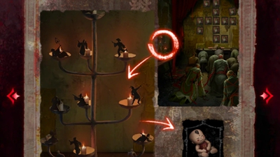 10、【男】根据壁画线索,如图点燃特定的烛火,随后拾取布娃娃。