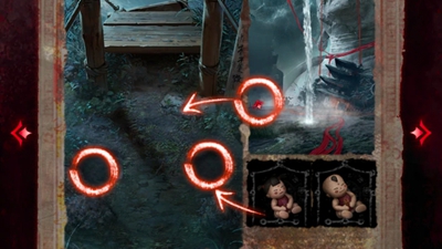 11、【女】将两个布娃娃都埋到庭院边缘吊桥处的土坑里,将开启通向迷宫的吊桥。