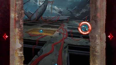 7、【男】使用铜镜照射废墟前的浓雾,破解幻象后可进入楼墙。
