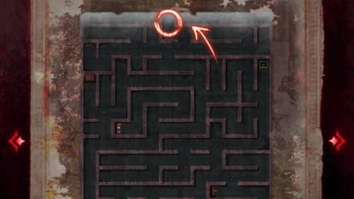 12、【男】在楼墙此箭头处进行眺望,可以看到奚月遥当前的位置和面向,以引导她攻克迷宫。