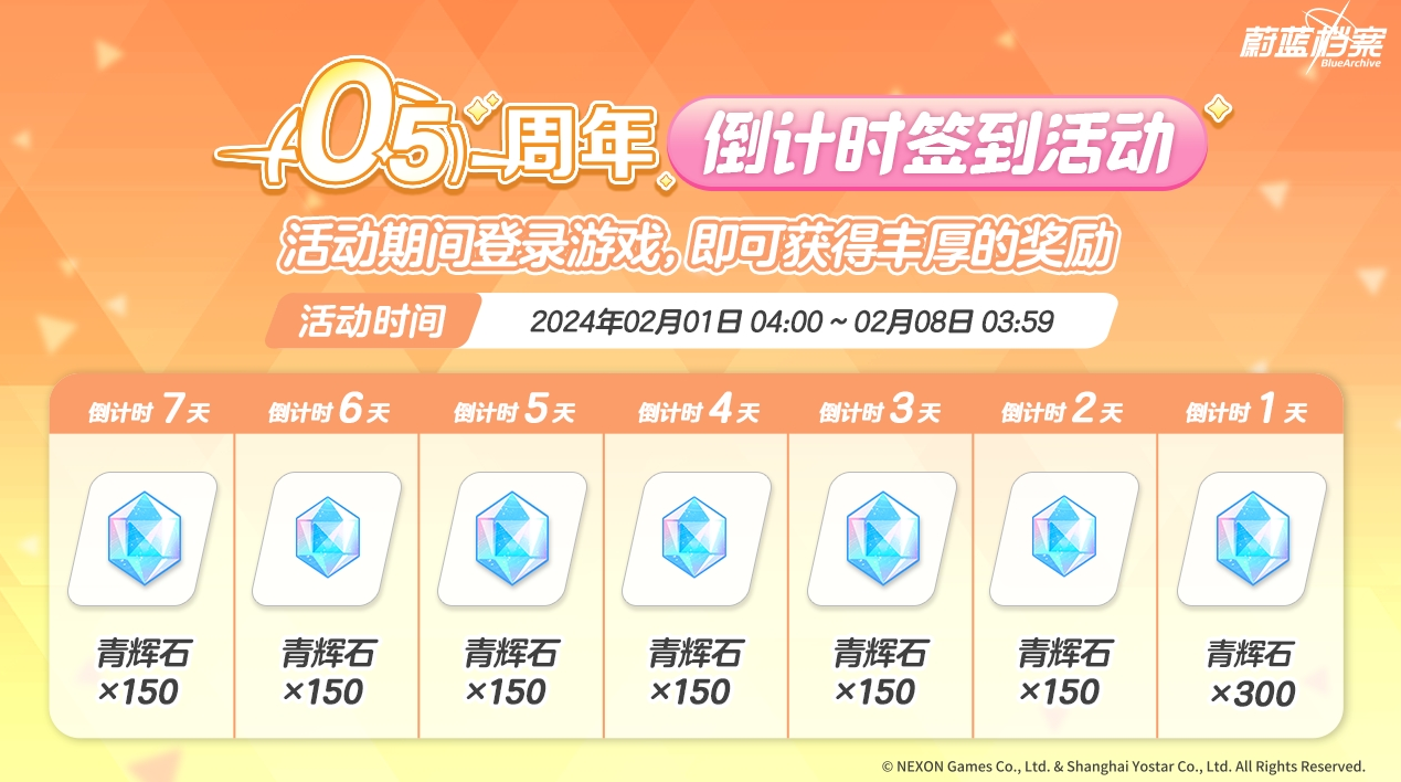 《蔚蓝档案》半周年签到活动奖励一览