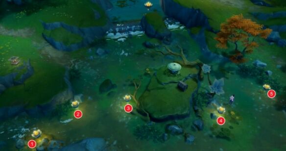 如果你角色跑得不够快, 可以选择将2个「流莲盏」放置在莲花灯的中间,仙力光环也可点亮所有莲花灯。