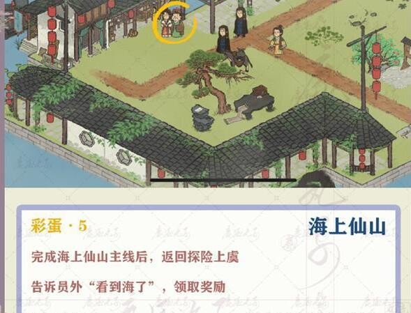 5、彩蛋5完成海上仙山主线后,返回探险上虞,告诉员外“看到海了”,领取奖励。、
