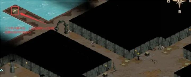 4、完成三个木笼机关后,湖中心会出现通往上层山洞的洞口;