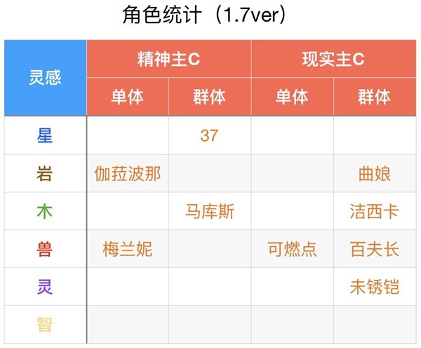 2.优先统计所有6星及部分公认强力5星,若某一灵感某一定位下暂无上述角色,则按星级降序考虑低星角色,直到出现符合条件的角色。