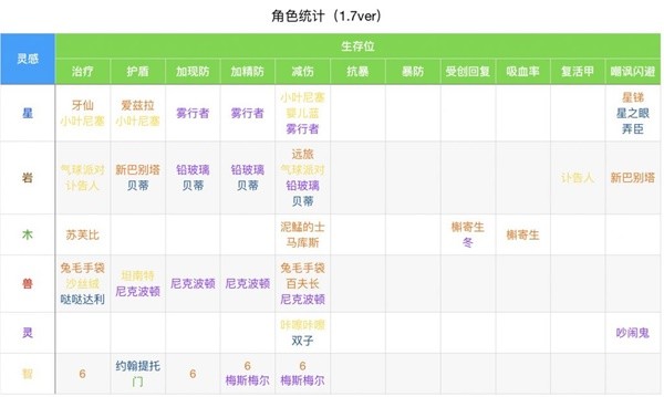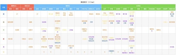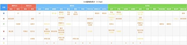1.大类分为主C位、增伤位、生存位3种,同一角色可能同时出现在多个分类中。