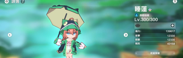 睡莲就是一个纯奶妈花灵,她的大招是释放回血技能,以睡莲位中心的半斤4.5米范围内的队友都会回血,回血量以主角的攻击力为基础。如果新手玩家职业选择的是剑士或是弓箭手,前期只抽到睡莲的话,可能有点战力不足,可以蹭一下别的队伍一起打怪就会轻松一点。