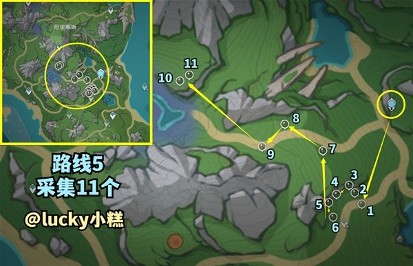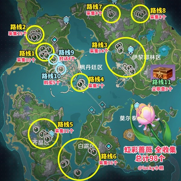 路线11为尘歌壶种植获得的虹彩蔷薇,共8个