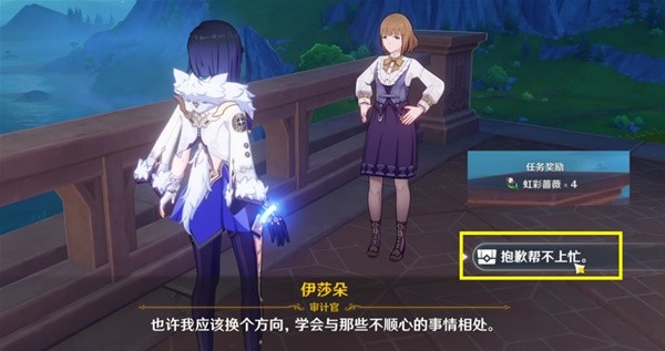 主城枫丹廷npc【伊莎朵】(夜间)一次性对话奖励4个海 虹彩蔷薇。