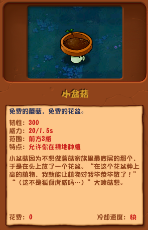 以上就是今天关于植物大战僵尸杂交版小盆菇介绍的全部内容分享啦,希望对大家能够有所帮助,感兴趣的小伙伴记得关注本站哦,本站每天都有最新的游戏攻略和资讯教程分享给大家,我们下期内容再见啦。