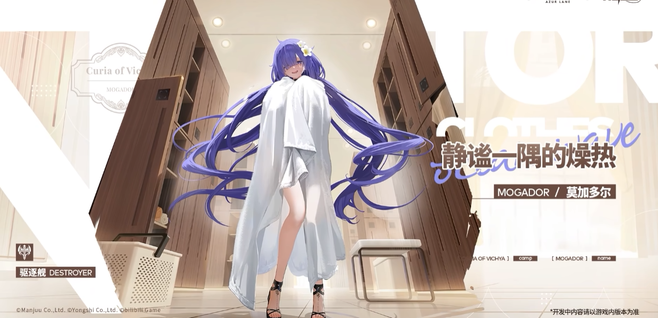本次即将推出的新皮肤隶属UR彩皮驱逐舰莫加多尔,具体的介绍语为:斯哈斯哈,斯哈,怎么办呢……指挥官的气味,就留在这里吧。