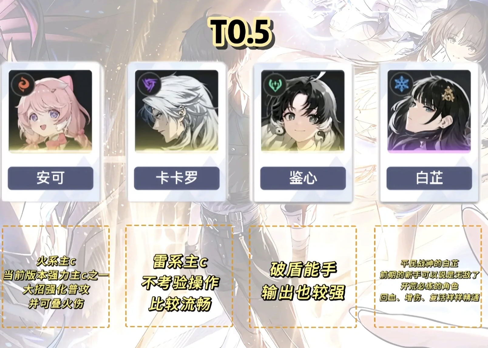 安可:火系主C,也是当前版本强力主C之一,大招强化普攻,并可叠火伤。