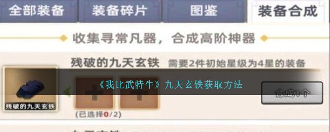 我比武特牛是一款非常热门的竞技游戏,在游戏中玩家想要升级需要许多不同的材料,九天玄铁是五星装备升级技能需要使用到的重要材料,有很多玩家不知道怎么获取,今天小编为大家带来了我比武特牛九天玄铁获取方法介绍,感兴趣的小伙伴一起来和小编看看吧。