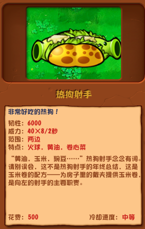 特点:可以发射一连串的火球,黄油,卷心菜,还能生产阳光