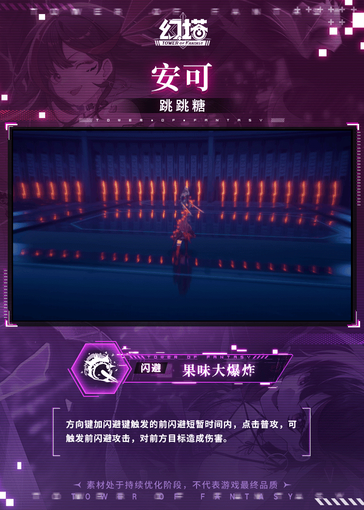果味大爆炸:方向键加闪避键触发的前闪避短暂时间内,点击普攻,可触发前闪避攻击,对前方目标造成伤害。