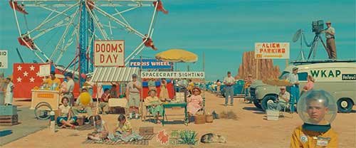 也许韦斯.安德森并不打算在上一部作品里复杂精妙的冒险之后歇口气,他暂时放下了《法兰西特派》里精心打磨的场景道具以及风趣幽默的故事合集,舞台也从五彩缤纷的法国小镇搬到了糖果色的亚利桑那州沙漠,同时还是带着一大堆好莱坞明星,在covid-19肆虐的时期以饱满的热情创造出了几乎是今年最棒的电影《小行星城》。